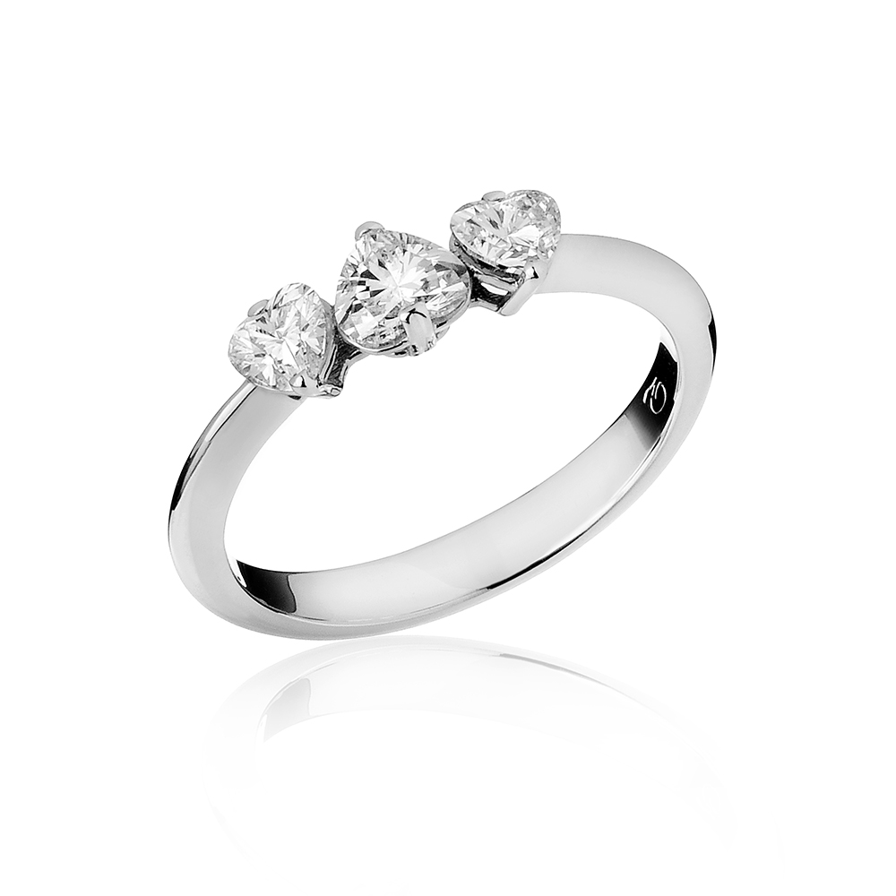 Afrodite: è dalla Dea greca dell’amore che prende il nome questo elegante anello caratterizzato da tre diamanti a cuore.