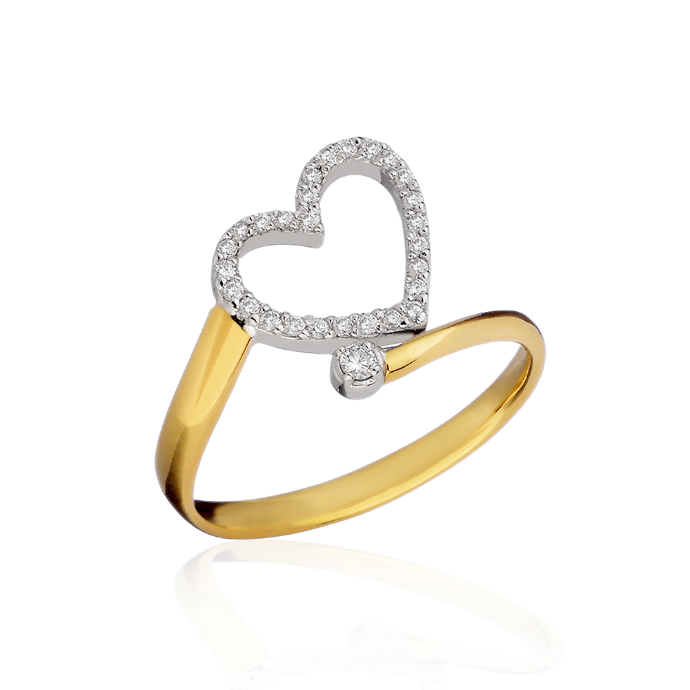 Il gambo in oro giallo si divide delicatamente nella parte superiore abbracciando un cuore di oro bianco con splendidi diamanti.