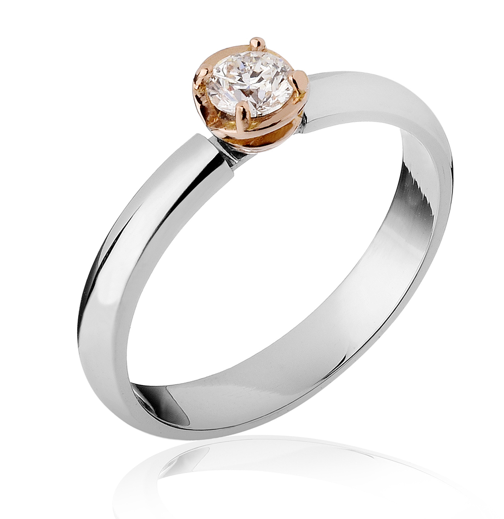 Anello con gambo in oro bianco e oro rosa titolo 750‰ con diamante naturale taglio brillante.