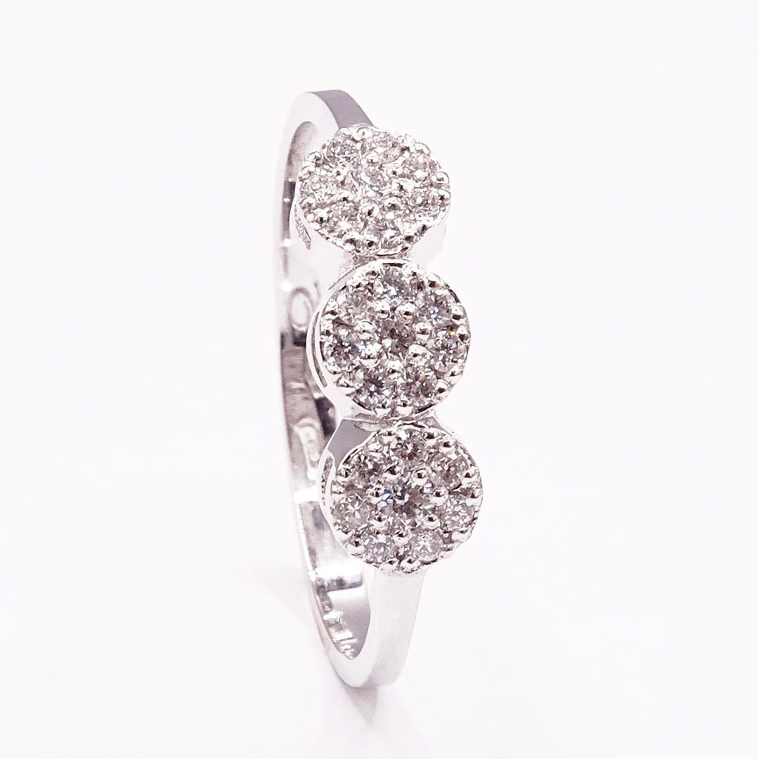 Tre pavé di diamanti a formare un unico anello, raffinato e luminoso.