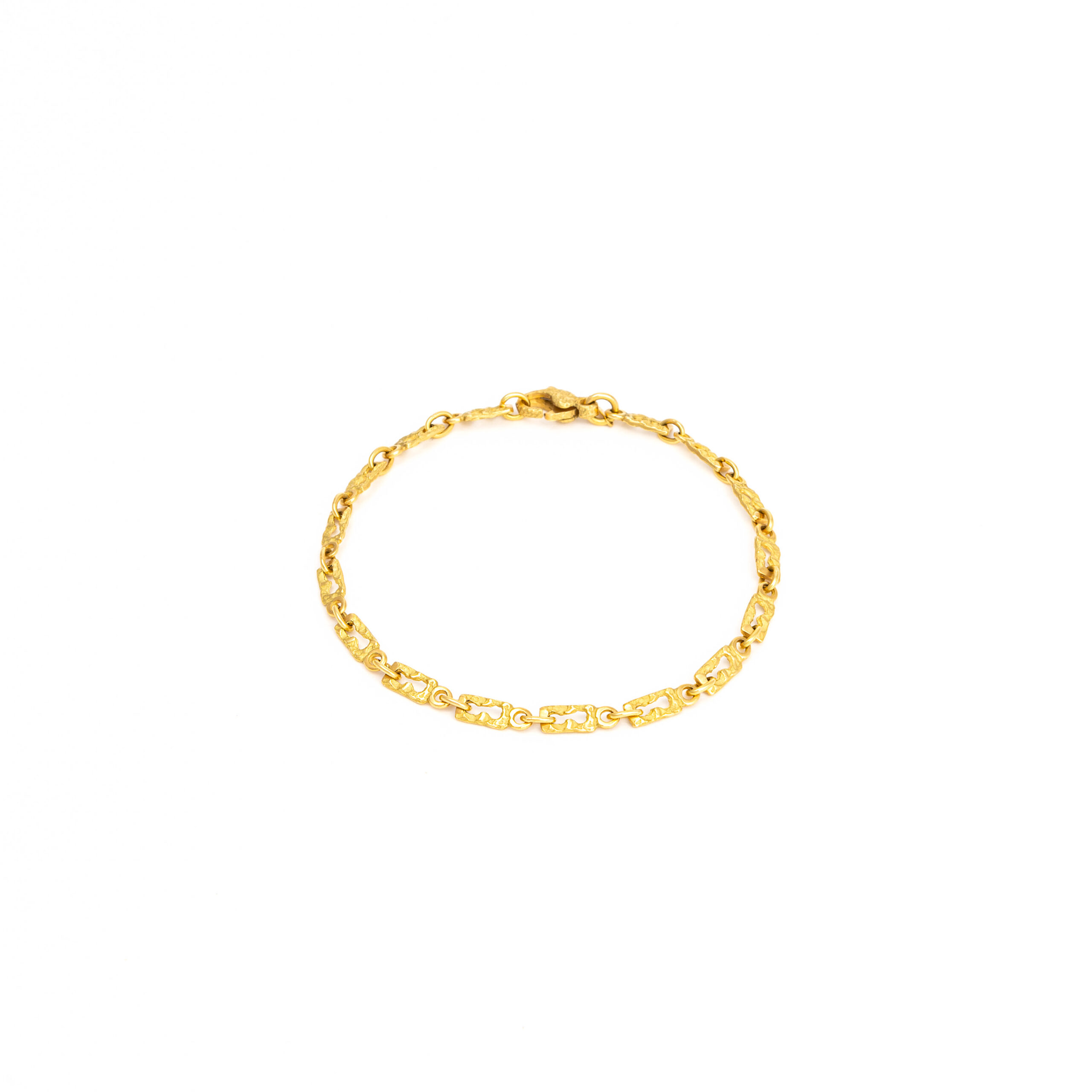 La catena di maglie rettangolari dall’elegante finitura satinata, impreziosite da dettagli lucidi che aggiungono brillantezza all’insieme, per un tocco di eleganza senza tempo.