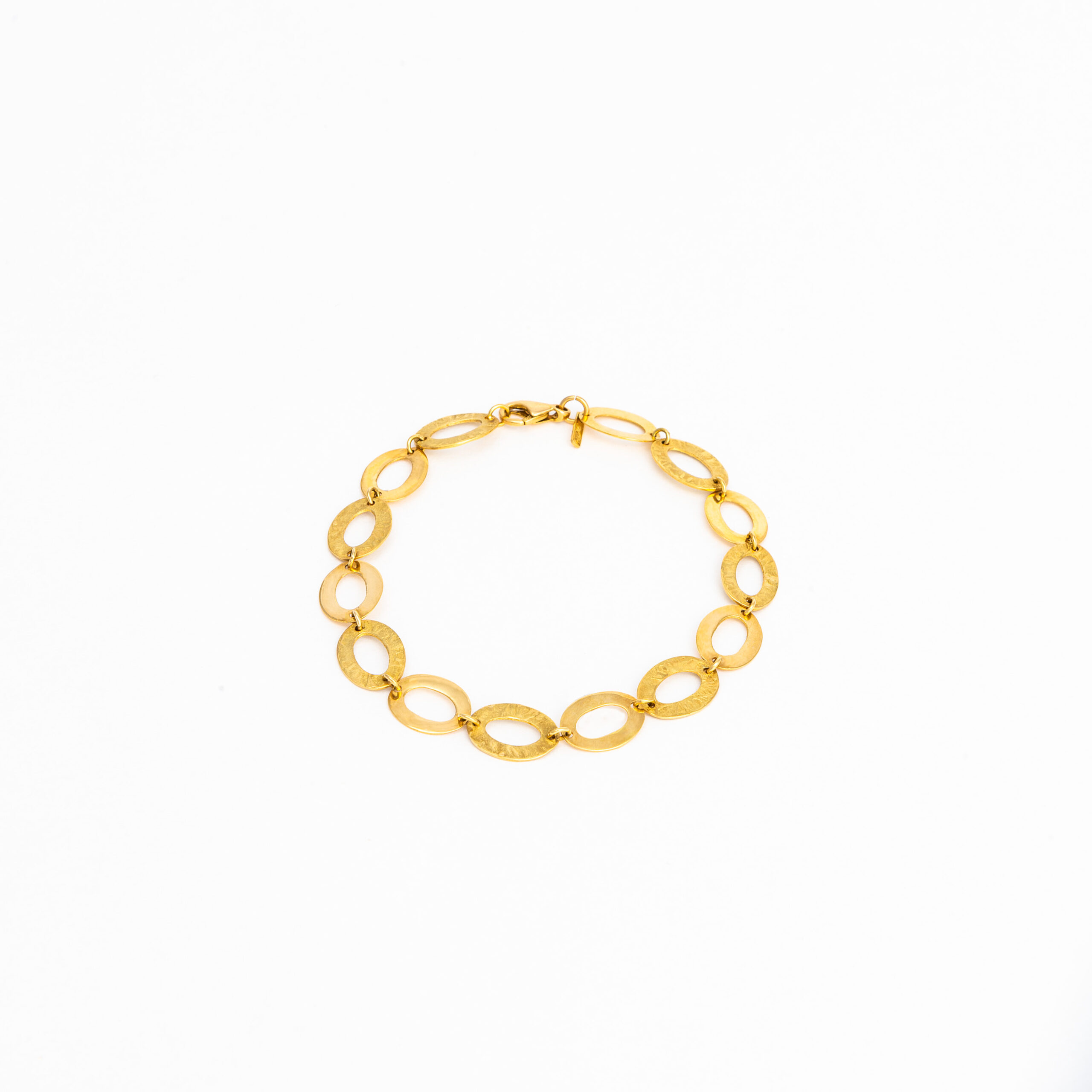 L’alternanza di maglie lucide e maglie finemente lavorate crea un’armonia unica catturando la luce con eleganza e aggiungendo un tocco distintivo al bracciale.