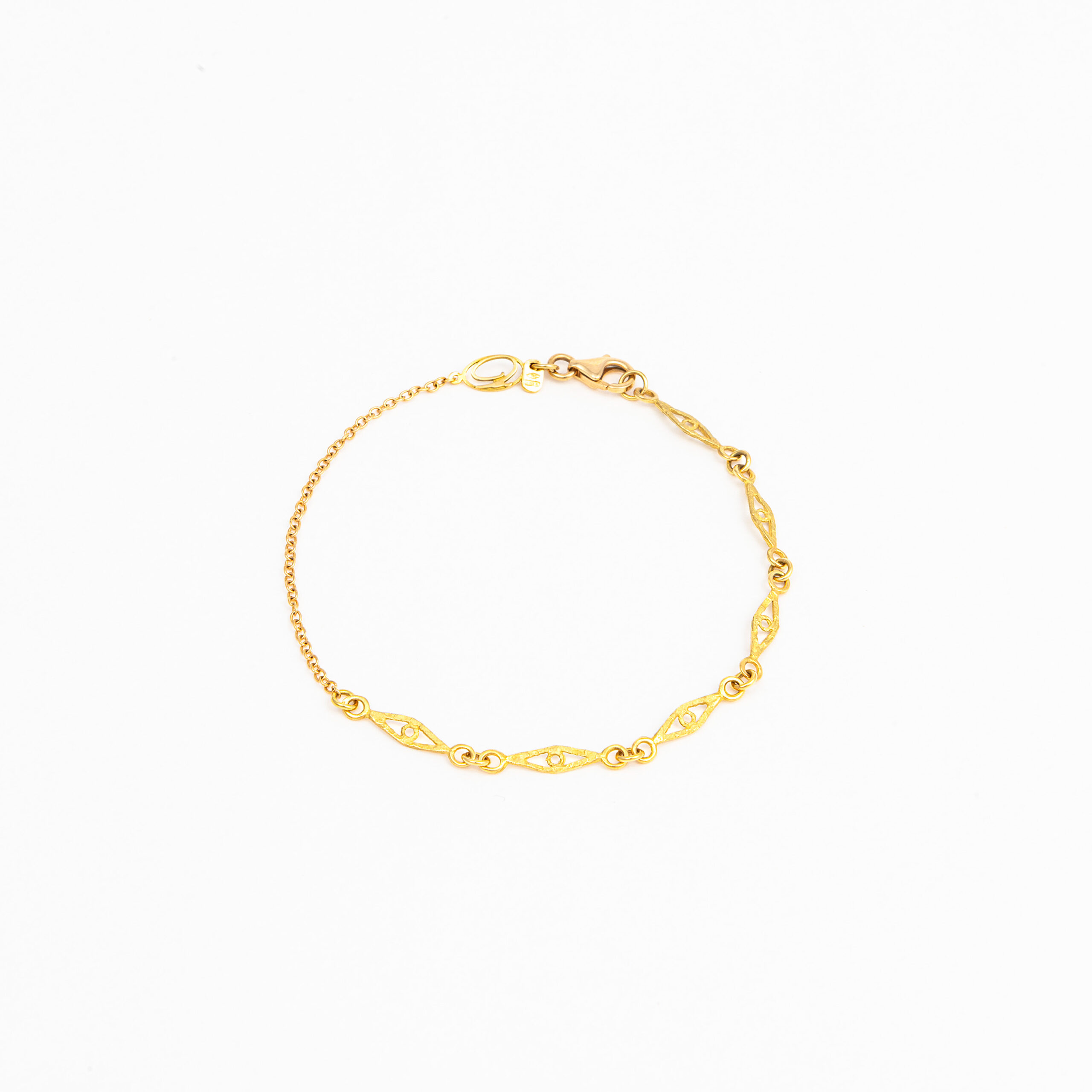 La catena rolo’, classica e raffinata, lascia il posto alla maglia a rombi, finemente decorata, creando un contrasto di simmetria e modernità.