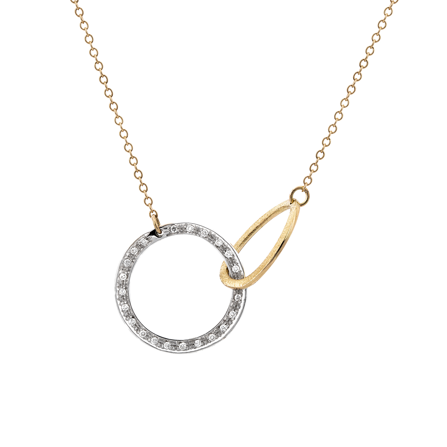 L’eleganza dei diamanti, l’oro bianco scintillante e l’oro giallo satinato in un contrasto di texture e tonalità danno vita ad una creazione unica, sofistica e raffinata.
