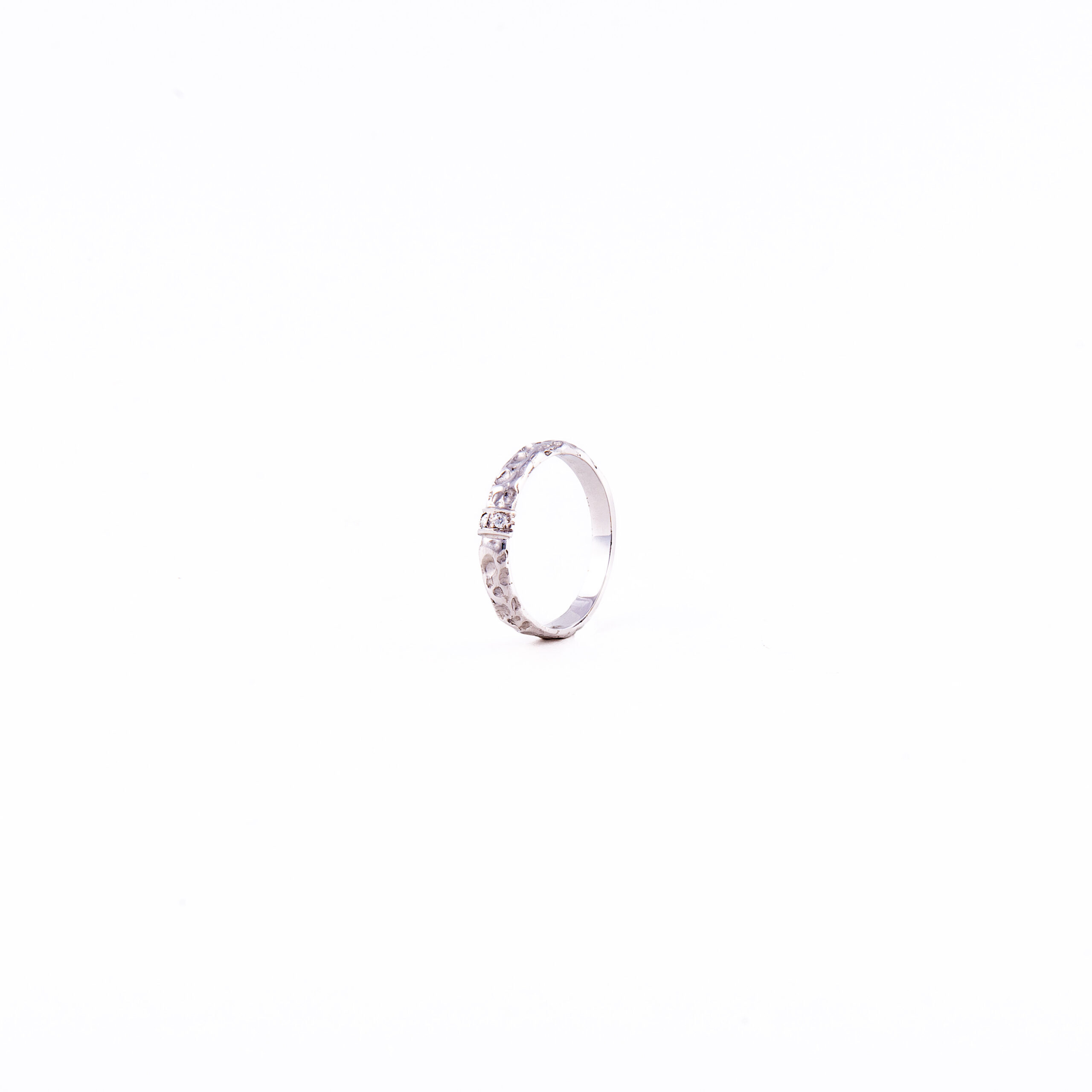 Fede classica con un dettaglio di diamanti al centro della lavorazione etrusca e oro lucido alla base dell’anello.