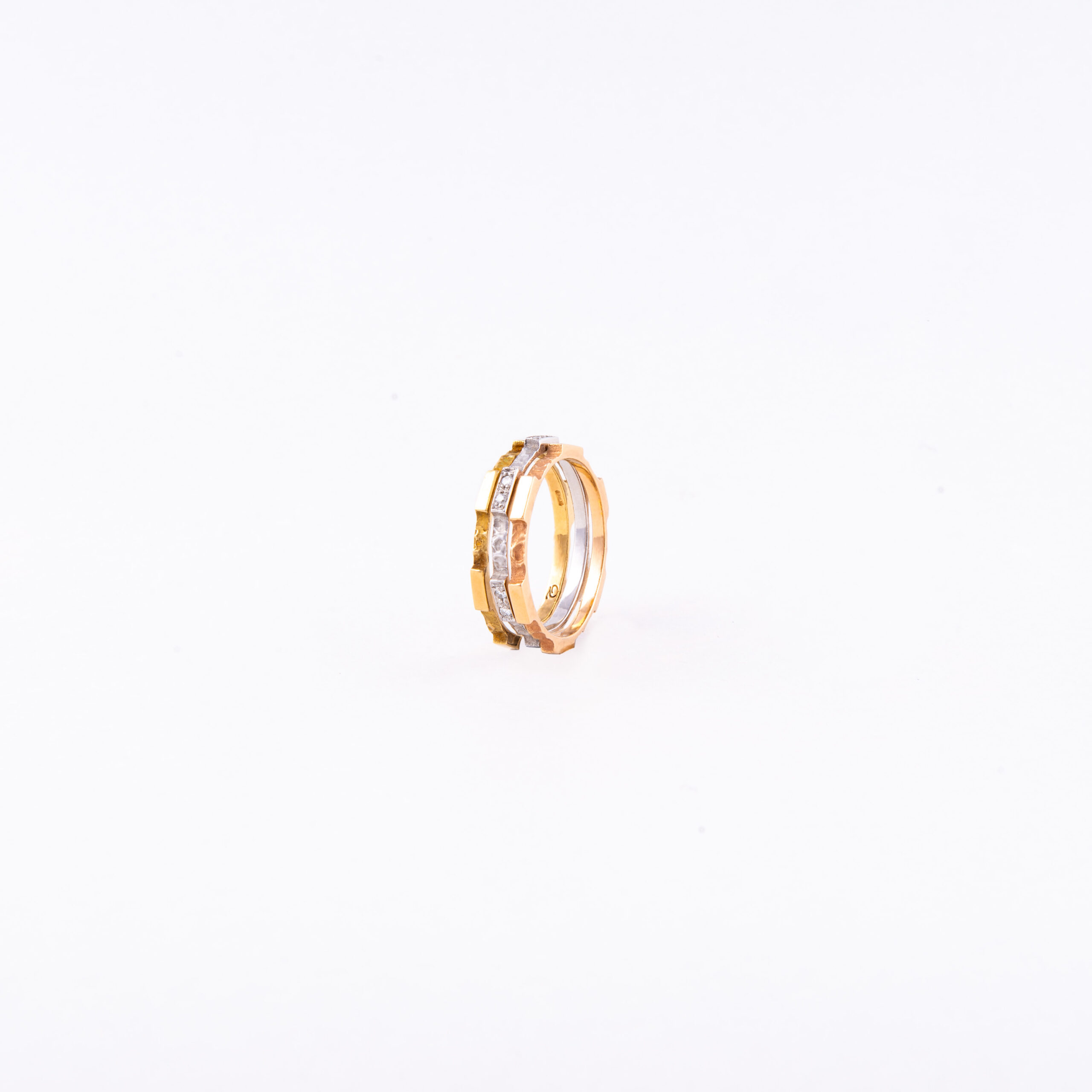 Tre fedine in cui la lavorazione etrusca si alterna ad elementi lucidi e a diamanti.